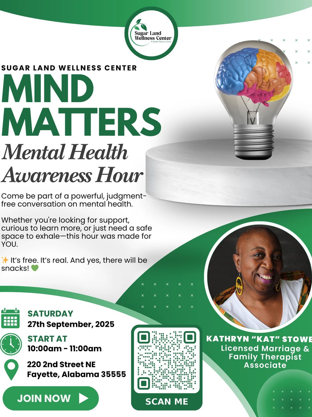 A safe and welcoming space to learn, share, and build awareness around mental health. Join Kathryn “Kat” Stowe, LMFTA, for conversations that break stigma and offer practical tools for everyday wellness.